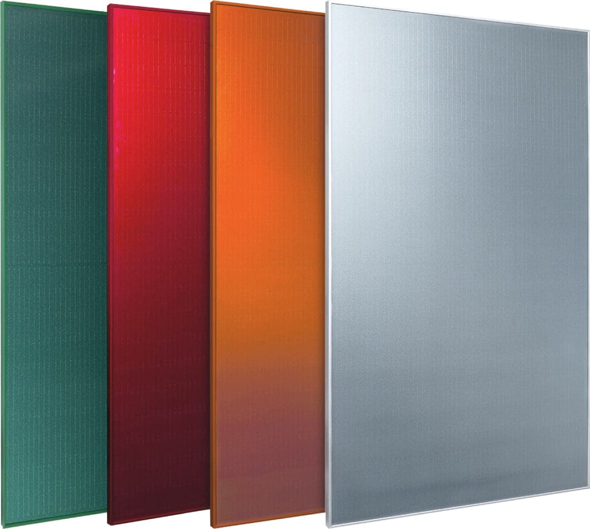 Aurinkopaneelien ei tarvitse olla tylsän mustia. Nykyisin on saatavilla aurinkopaneeleja, joissa paneelin etupuolen lasi on sävytetty luoden paneeleille kauniin ulkoasun.  Olemme ottaneet nämä näyttävät vaihtoehdot tarjontaamme. Nyt onkin etsinnässä pilottikohteita, joihin näitä Suomessa ennen näkemättömiä paneeleja asennetaan!